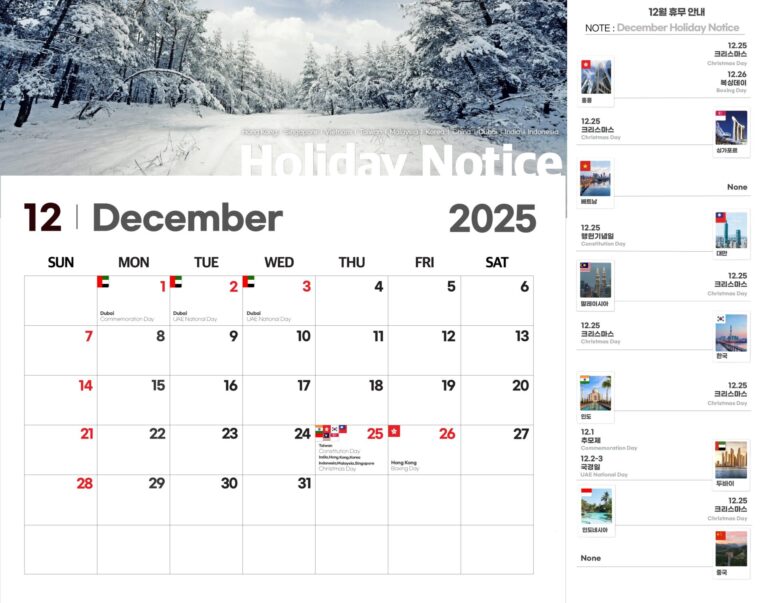 프레미아 티엔씨 2025년 12월 – 공휴일 공지