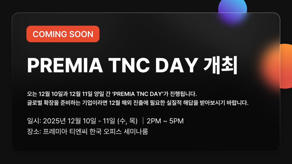 글로벌 확장을 준비하는 기업이라면! 12월 프레미아 티엔씨 데이에서 해외 진출에 필요한 실질적 해답을 받아보시기 바랍니다 🎯